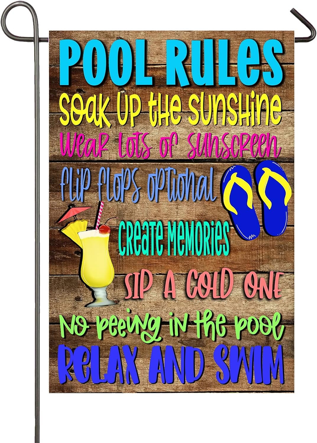 Flags Galore Pool Rules Garden Flag w Pool Rules Garden Flag Custom swimming pool rules garden flag, pool rules flag, new. pool rules slogan wooden garden flag, vertical double size, create memories, relax and swim in the yard, outdoor decoration,. This summer garden flag features flip. pool rules garden flag: welcome summer in style with our personalized garden flag featuring a playful summery swimming pool design! check. Pool Rules Garden Flag.