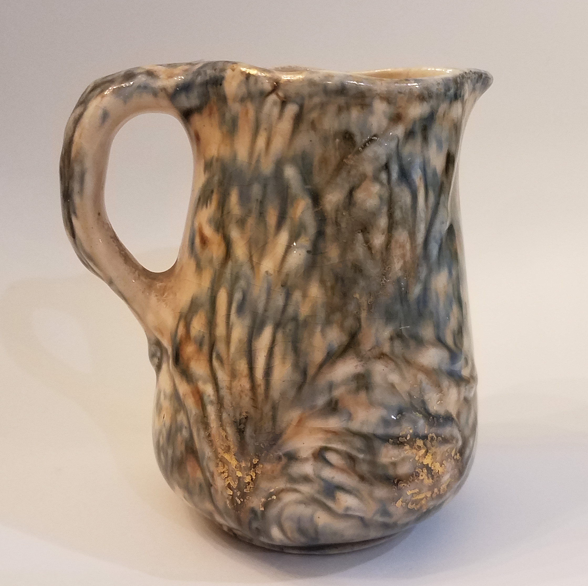 Small ceramic/stoneware pitcher/creamer blue and gold decoration