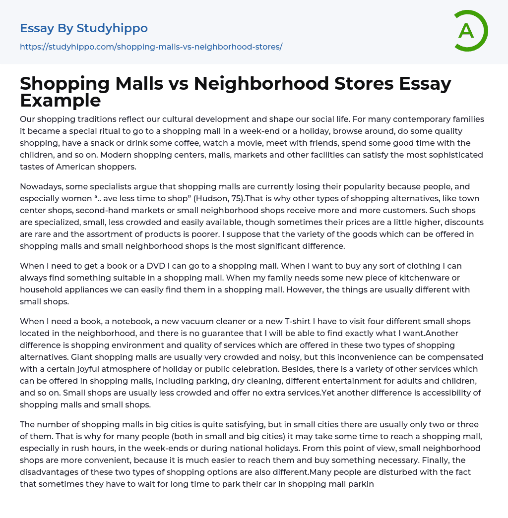 Shopping Malls vs Neighborhood Stores Essay Example