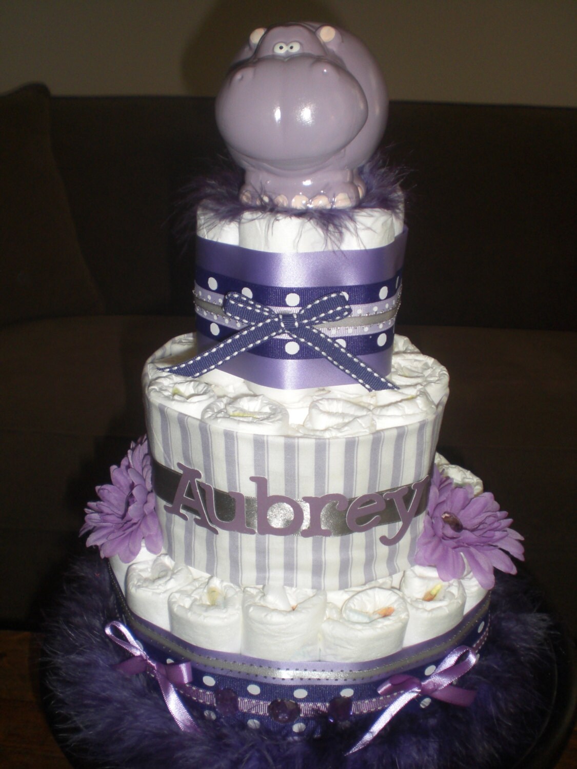 Purple Hippo Diaper Cake Baby Shower Centerpiece other styles Etsy