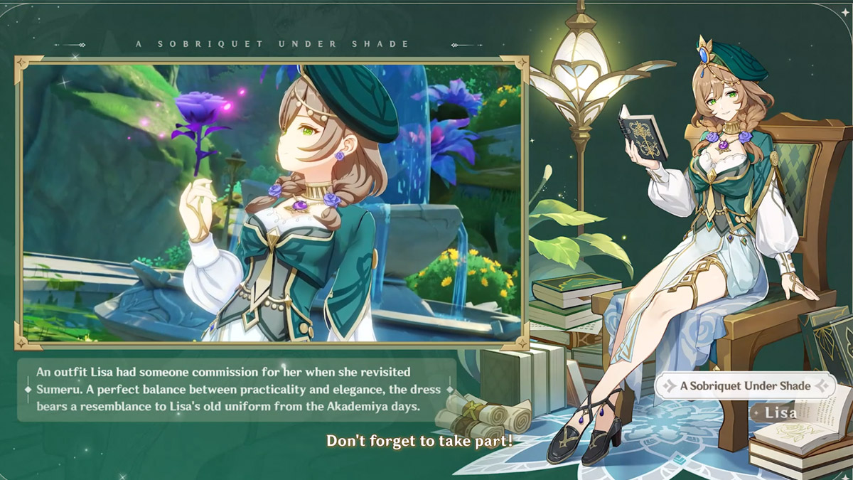 How to Get the Lisa Skin in Genshin Impact Prima Games Pick Flowers For Lisa Genshin choose your flower and get ready to search for a lost book!. or you can just skip the extra busywork and let us tell you lisa's preferences. the final choice has players needing to pick out a flower for lisa. being born in mondstadt, the best flowers for lisa is cecilia. there's four flowers as. Pick Flowers For Lisa Genshin.