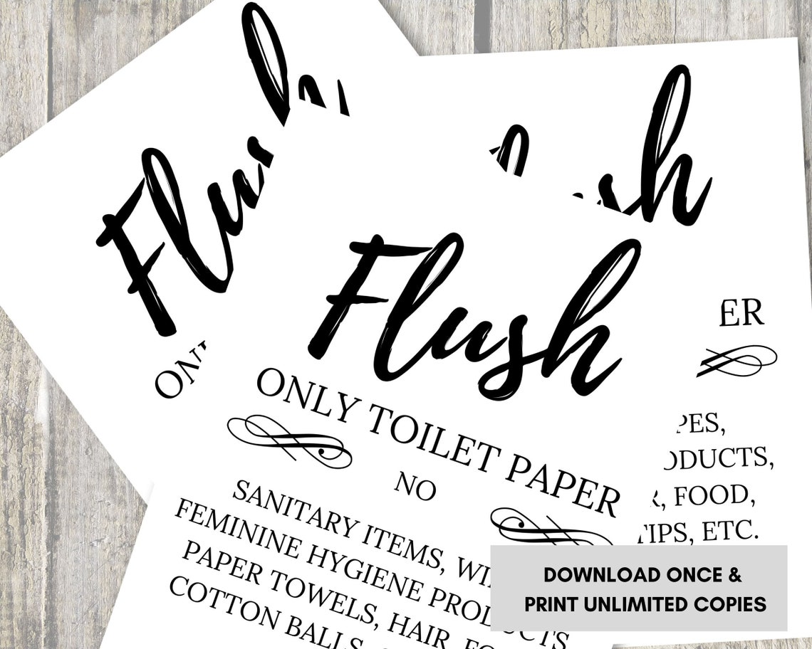 Flush Only Toilet Paper Printable, No Sanitary Products, Bathroom Sign Flush Only Toilet Paper Sign 5x7 inch flush only toilet paper & natural waste designer sign ~ ready to stick, lean or frame. Check out our flush only toilet paper sign selection for the very best in unique or custom, handmade pieces from our signs shops. Check out our flush only toilet paper sign selection for the very best in unique or custom, handmade pieces. Flush Only Toilet Paper Sign.