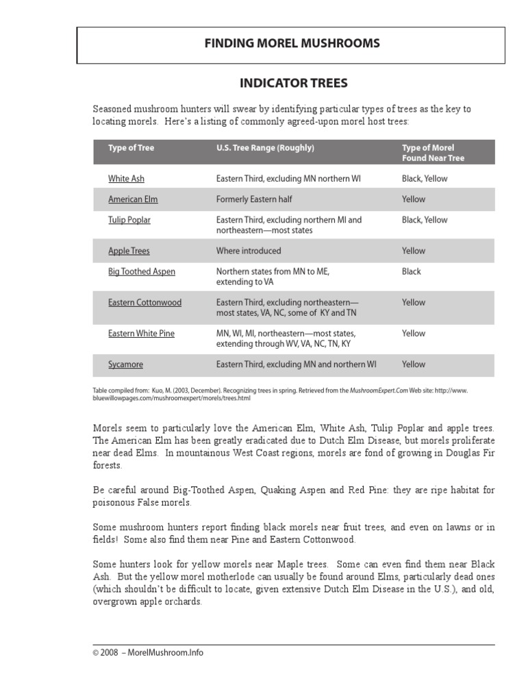Indicator Trees For Finding Morel Mushrooms PDF Trees Organisms