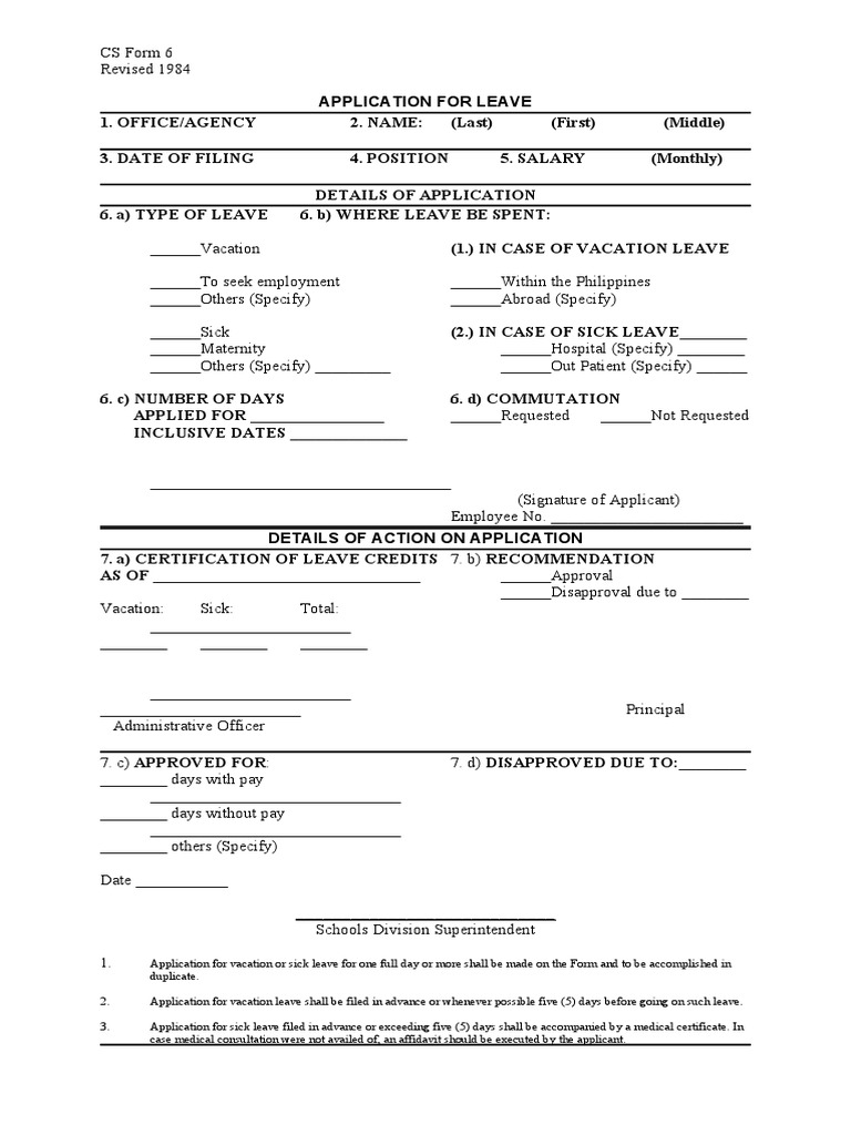 CS Form 6 (Application For Leave) PDF