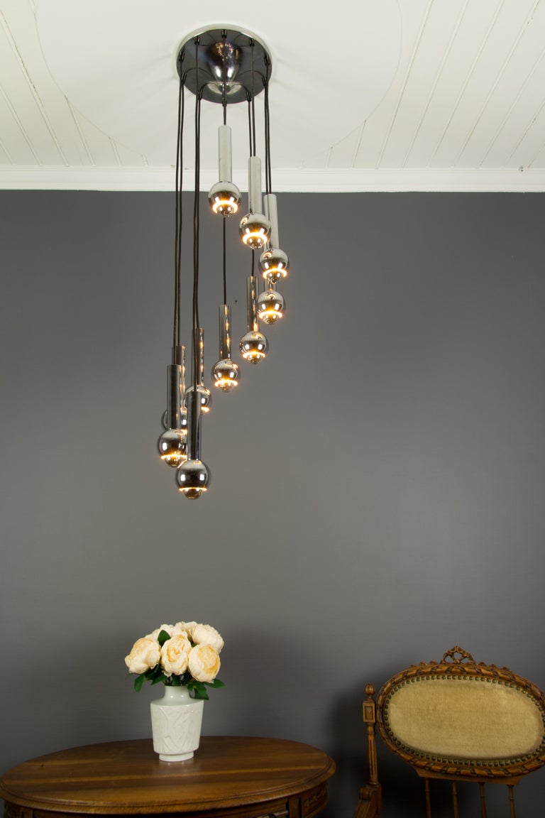 TenTier Chrome Cascade Chandelier Pendant Light by Baum Leuchten