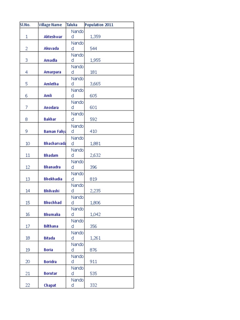 Taluka Village List PDF