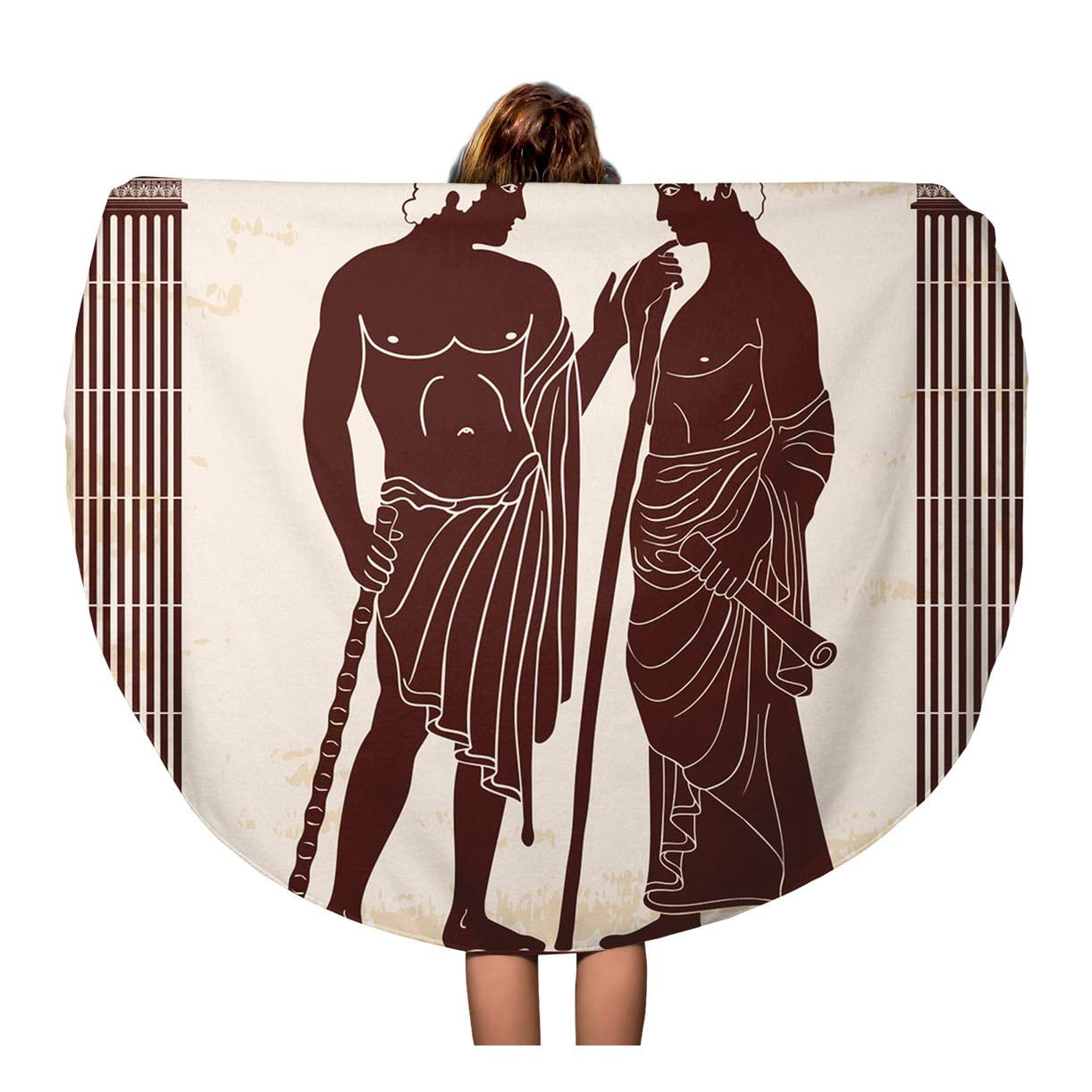 JSDART 60 inch Round Beach Towel Blanket Two Ancient Greek Mans Stands
