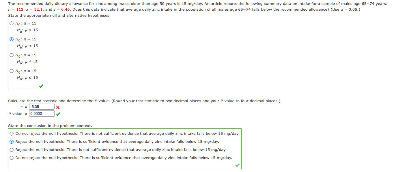 Solved The daily dietary allowance for zinc
