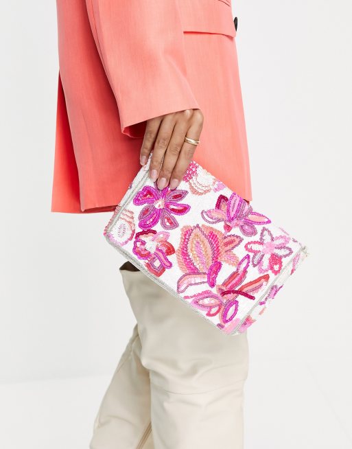 Accessorize sequin clutch bag in pink floral ASOS