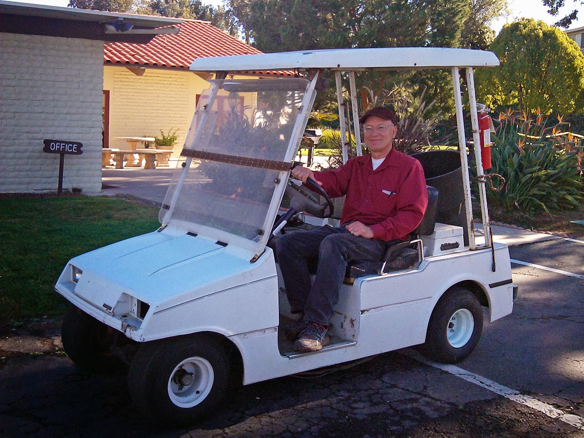 Funny old man in golf cart Greg in San Diego