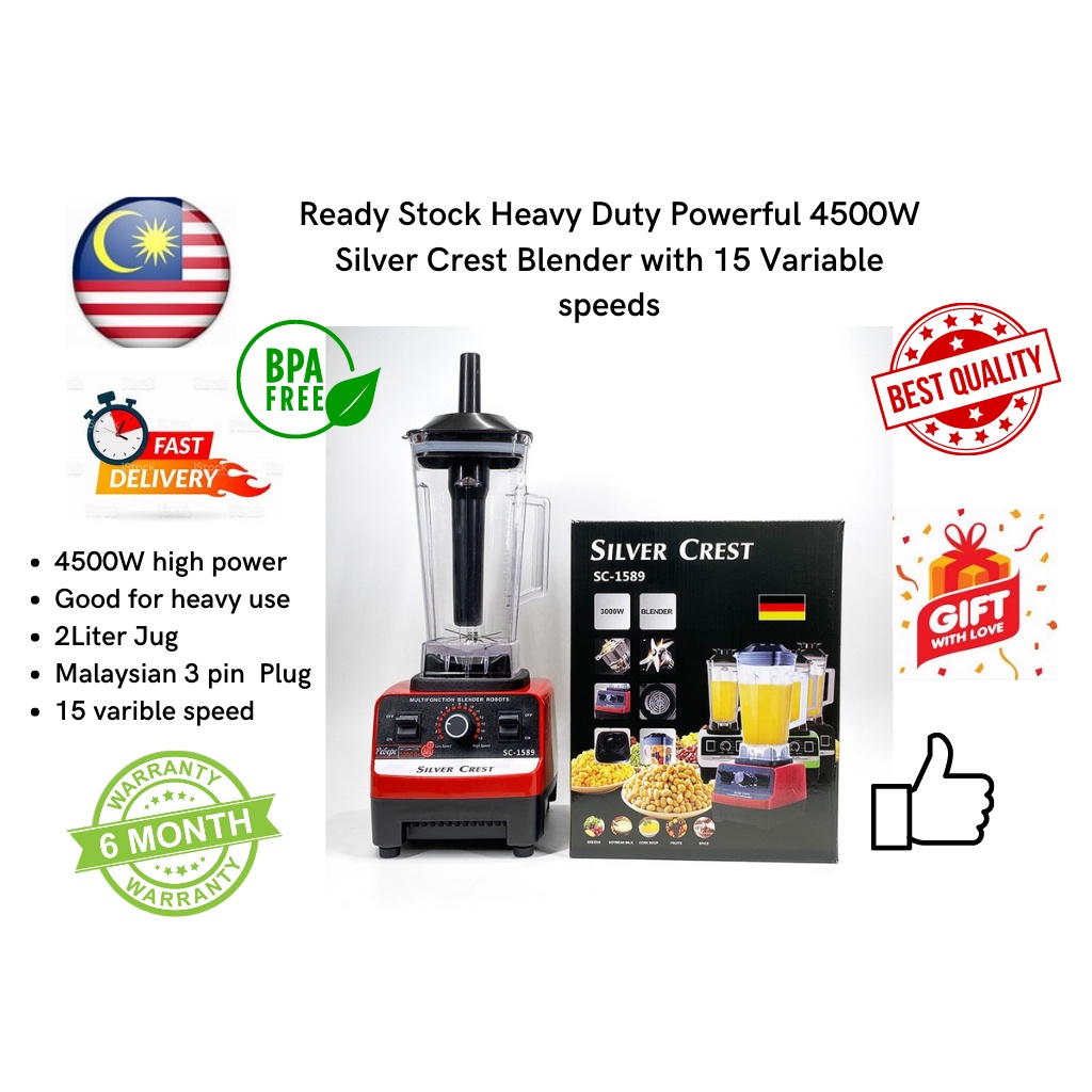 Ready Stock Heavy Duty Powerful 4500W Silver Crest Blender with 15