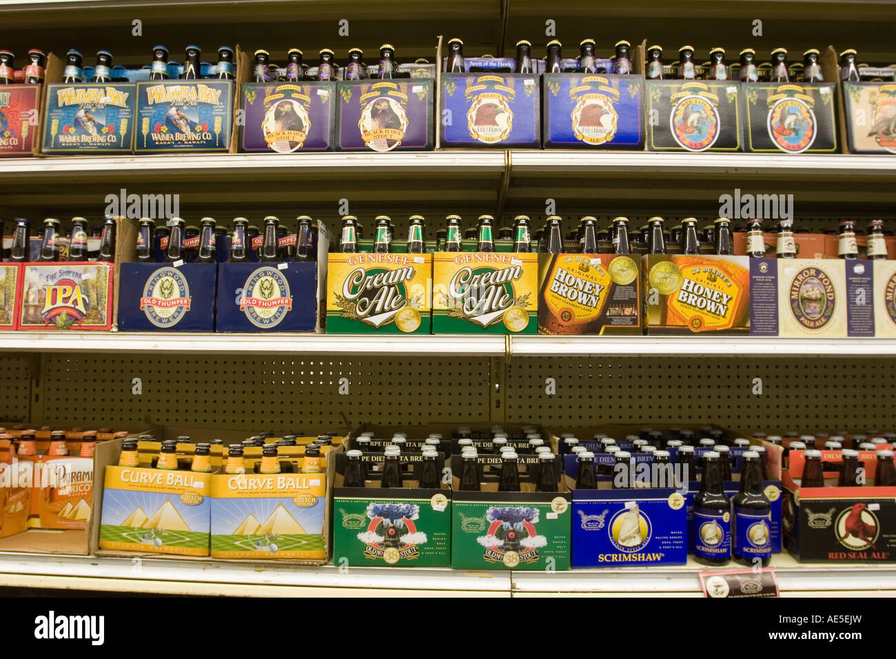 Rare beers ales and lagers for sale on grocery store shelves Stock