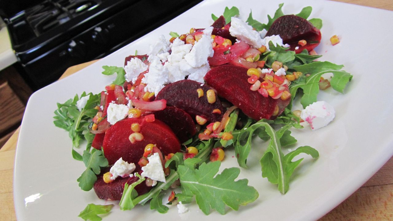 Beet Salad with Corn, Arugula and Goat Cheese