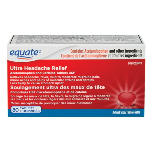 Equate Extra Strength Headache Relief Caplets, 250 mg, 100 Ct, 2 Pk Headache Relief Equate Shop headache relief caplets extra strength and read reviews at walgreens. Pickup & same day delivery available on most store items. Equate extra strength headache relief caplets temporarily relieve minor aches and pains due to a headache, cold, arthritis, toothache, muscular. Headache relief extra strength acetaminophen, aspirin and caffeine tablet, film coated Get temporary relief from minor aches and pains. Headache Relief Equate.