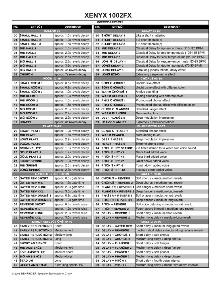BEHRINGER 1202FX EFFECTS LIST PDF