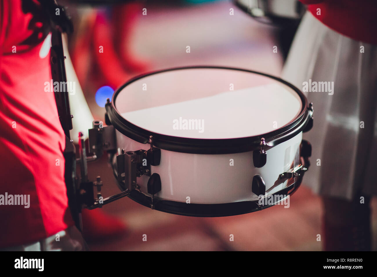 drummer plays with drumsticks on rock drum set Stock Photo Alamy
