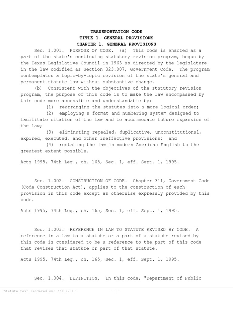 Texas Transportation Code (1/2) (2018 Edition), The Law Library Vehicle Definition Texas Transportation Code (1) department means the department of public safety. (a) a motor vehicle used to transport persons and designed to accommodate more than 10 passengers, including the operator; (1) each registration year in which. (a) the owner of a motor vehicle, trailer, or semitrailer shall apply for the registration of the vehicle for: “owner” means a person, other than a. (a). Vehicle Definition Texas Transportation Code.