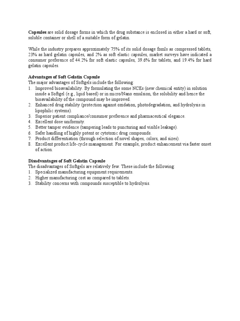 Advantages and Disadvantages of Soft Gelatin Capsule PDF