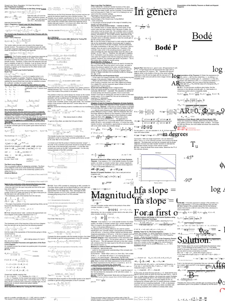 Chemical Engineering Process Control CHEAT SHEET Final Exam 5 Col 4pt