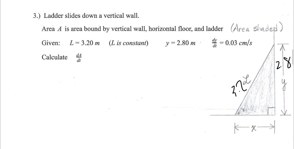 Solved 3.) Ladder slides down a vertical wall. Area A is