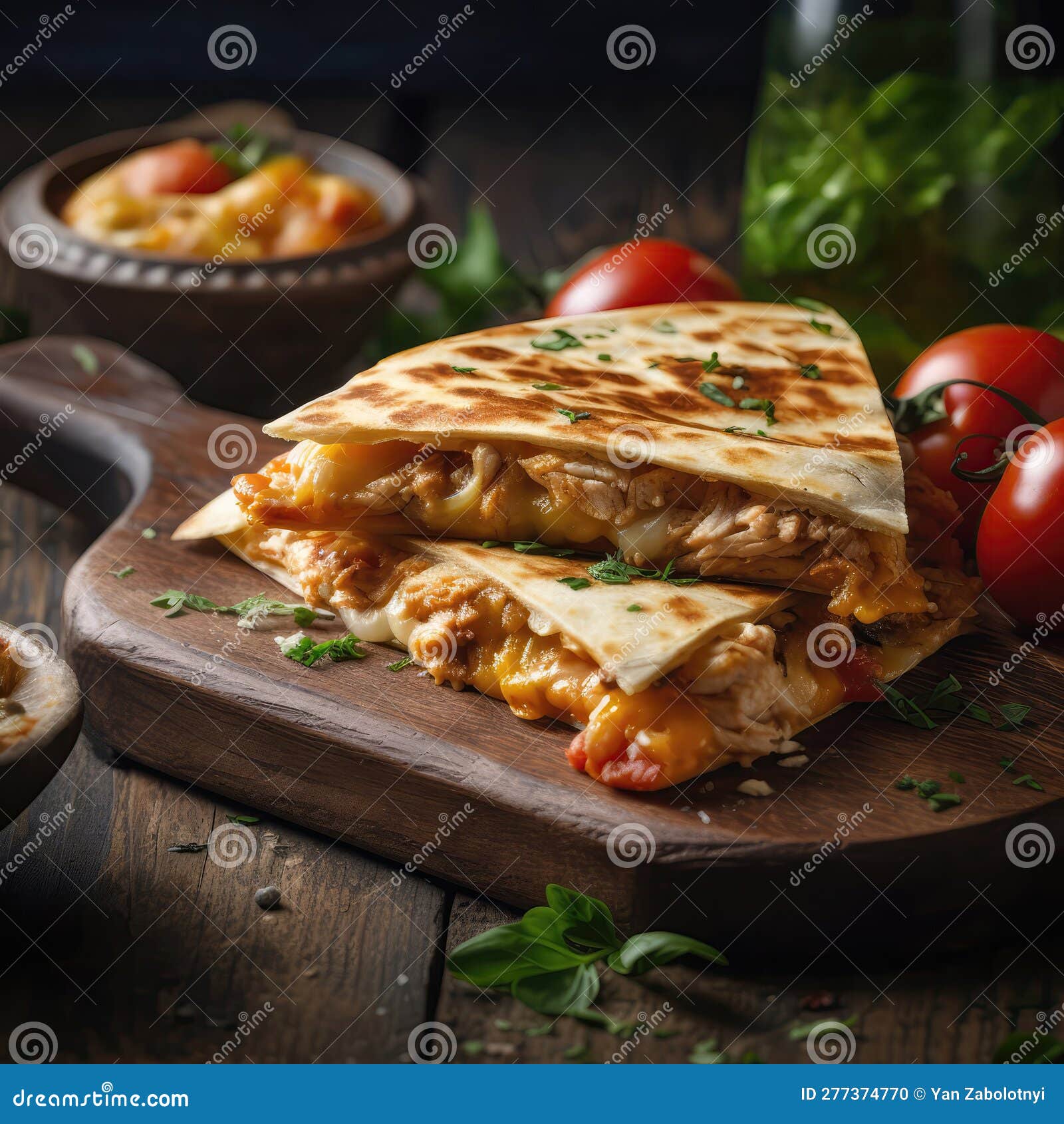 Chicken Quesadilla on Stone in Rustic Pub. Generative AI Stock