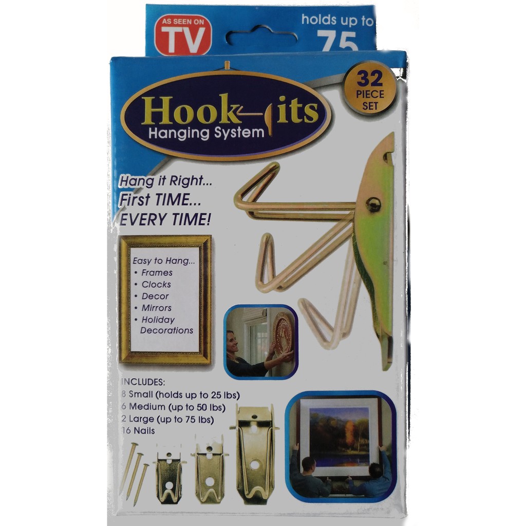 Hook Its Hanging System 32 piece Set Picture Frame Wall Hang Kit AS Hook Its Hanging System Hook its as seen on tv lets you hang frames, clocks, mirrors holid. Hook its lets you hang frames, clocks, mirrors holiday decorations and so much more fast and easily. Delivering to singapore 049145 update location all Hook its are engineered to hold from 25 lbs up to 50 lbs so once your hanging is on the wall you know. Hook Its Hanging System.