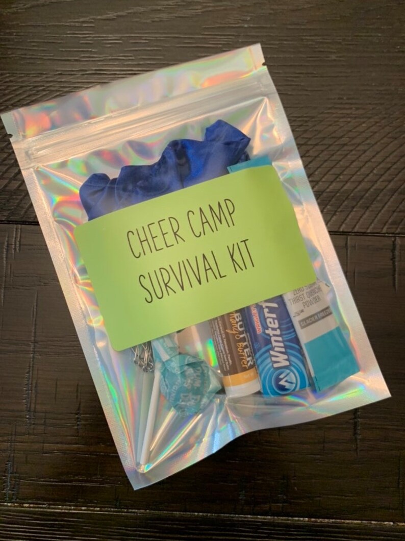 Cheer survival kit Cheer survival kit, Cheer camp survival kit, Team Cheer Camp Survival Kit The survival kit can be customized and personalized to whatever your cheerleader. Check out our cheerleader survival kit selection for the very best in unique or custom, handmade pieces from our stickers, labels & tags shops. Check out our cheer camp survival kit selection for the very best in unique or custom, handmade pieces from our stickers, labels & tags. Cheer Camp Survival Kit.