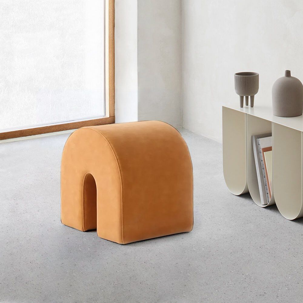Orange Entryway Ottoman Ushaped PU Leather Upholstered Ottoman Stool
