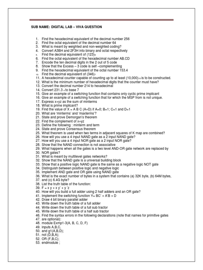 OS VIVA Questions nice question VIVA QUESTIONS 1 is an operating Digital Lab Viva Questions The document contains questions and answers related to digital electronics topics like gates, integrated circuits, universal gates, logic equations, flip. Frequently asked very important interview and viva questions on digital electronics with proper answers. This document contains 159 questions related to digital logic design. These are very important questions asked in digital electronics lab viva.logic gatesmultiplexerencoderdecodercomputational. Questions and answers on. Digital Lab Viva Questions.