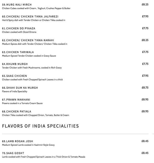 Menu at Flavors of India restaurant, Hounslow, 1113 High St