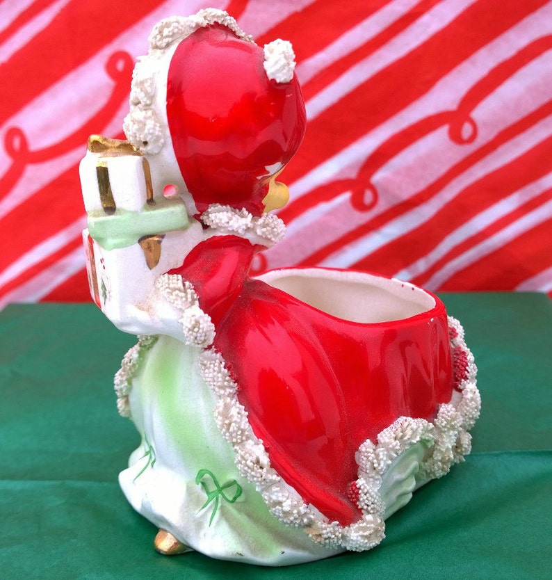 Vintage Christmas Napco Planter Figurine Girl with Red Dress Etsy