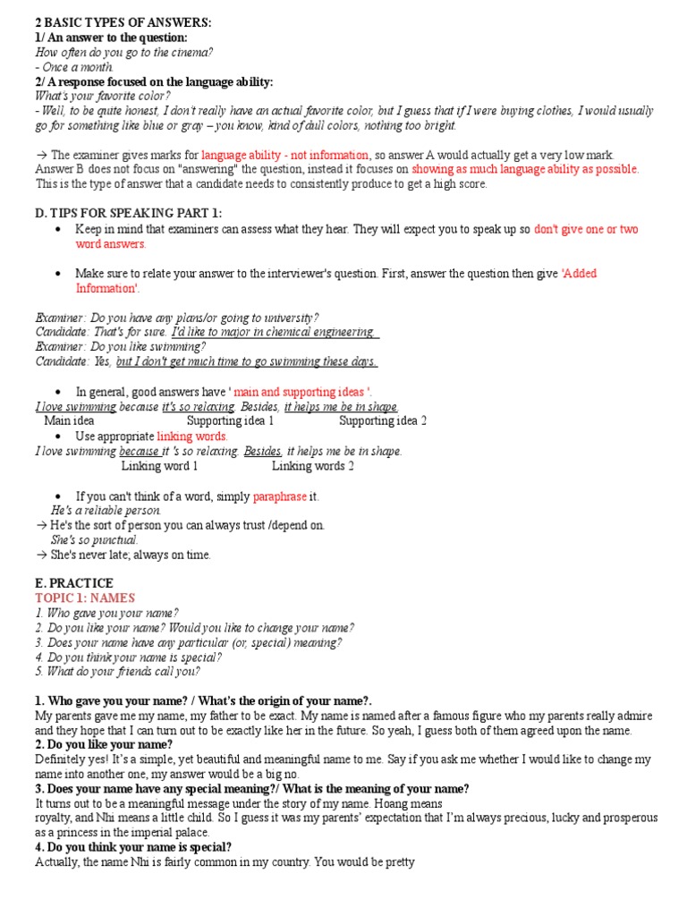 2 Basic Types of Answers PDF Question Time