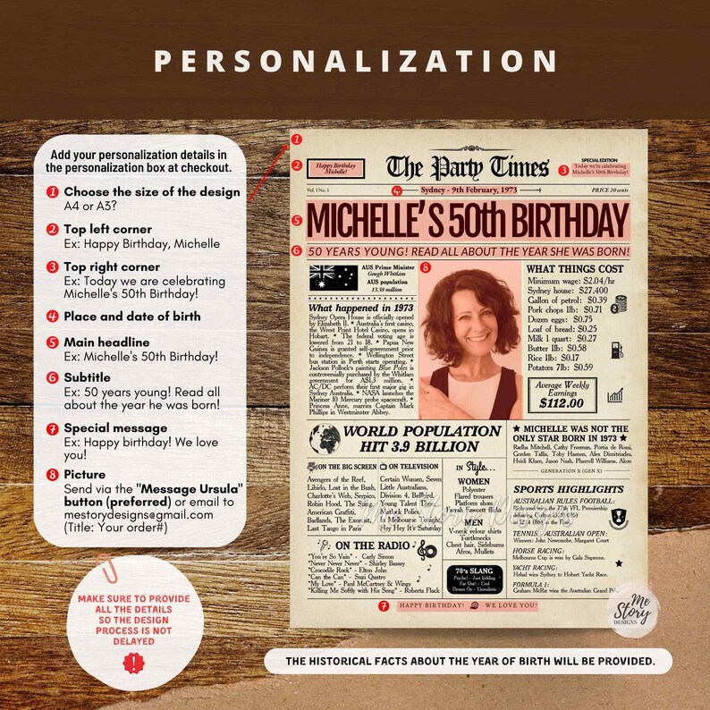 50th Birthday Newspaper AUSTRALIA 1973 Birthday Gift AU Back Etsy Newspaper Birthday Gift Australia Simply send us their name, birth date, a short message, and an image, and we'll create a custom newspaper. Paper world offers offers original newspapers, magazines and other memorabilia from the day you were born. This is a unique and treasured gift suitable for a landmark event. Unique gift ideas for a birthday present, mother's day gift and more birthday. Newspaper Birthday Gift Australia.