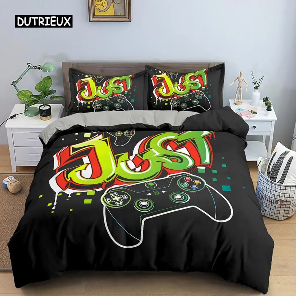 Gamer Bedding Set Retro Game Handle Duvet Cover Teen Boy Girl Polyester