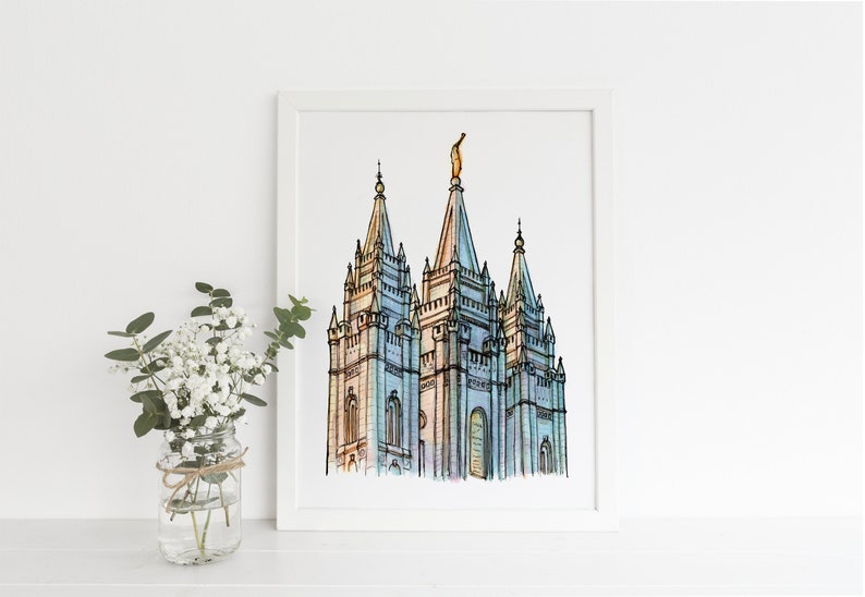 Salt Lake City LDS Temple Ink & Watercolour painting Digital Etsy