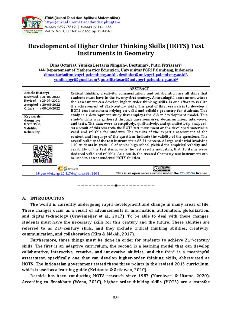 Development of a Valid and Reliable Higher Order Thinking Skills Test