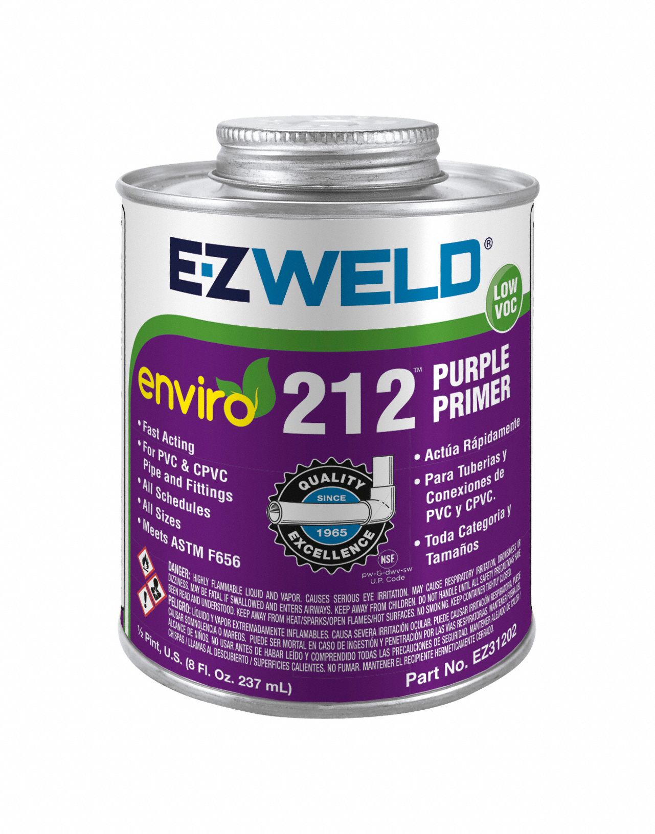 EZ WELD Purple Primer, Primer, Size 8 oz, For Use With CPVC Pipe and Fittings, PVC 793DZ3