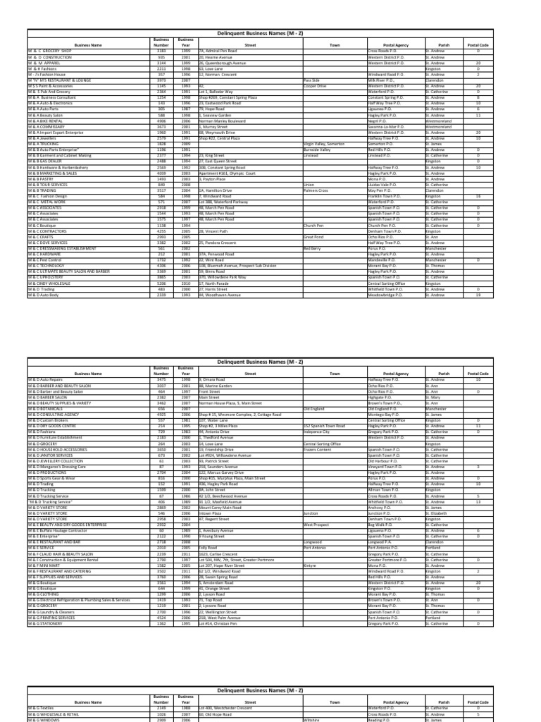 Delinquent Business Names (M Z) PDF Business Process Business