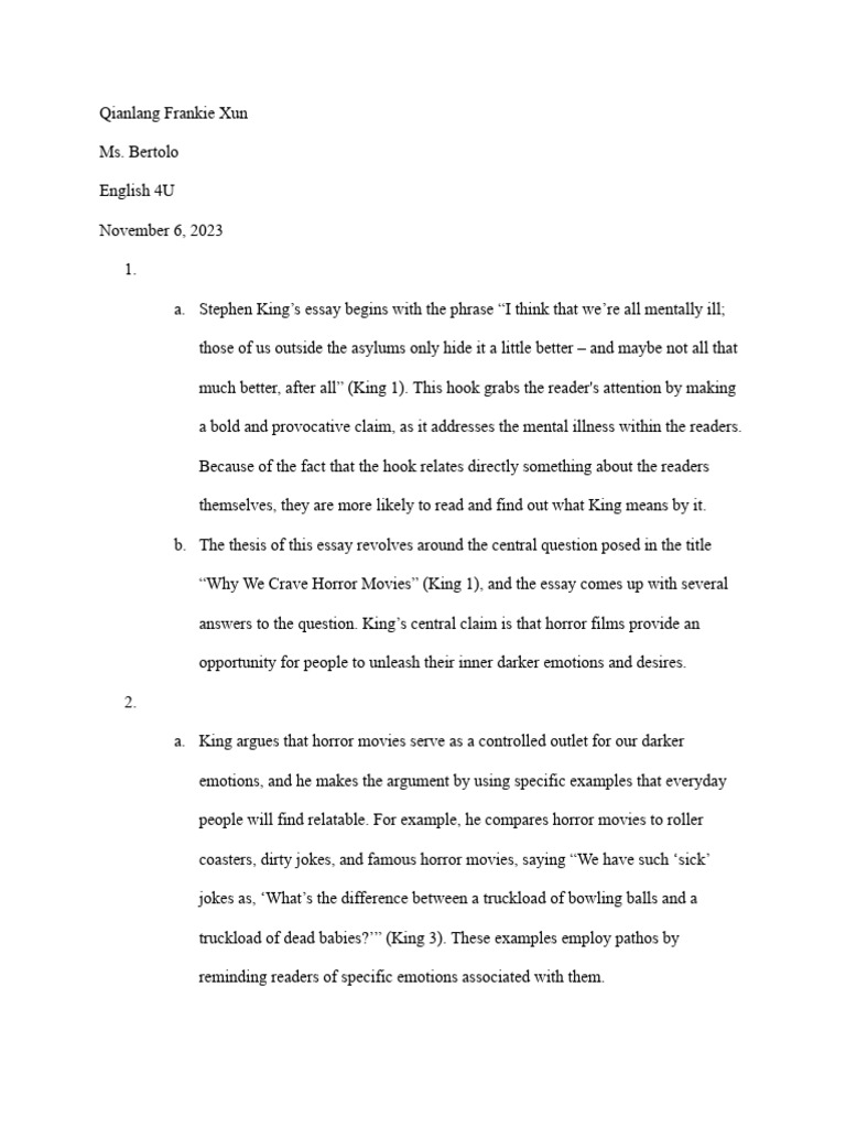 Stephen King Analysis PDF Horror Fiction Essays