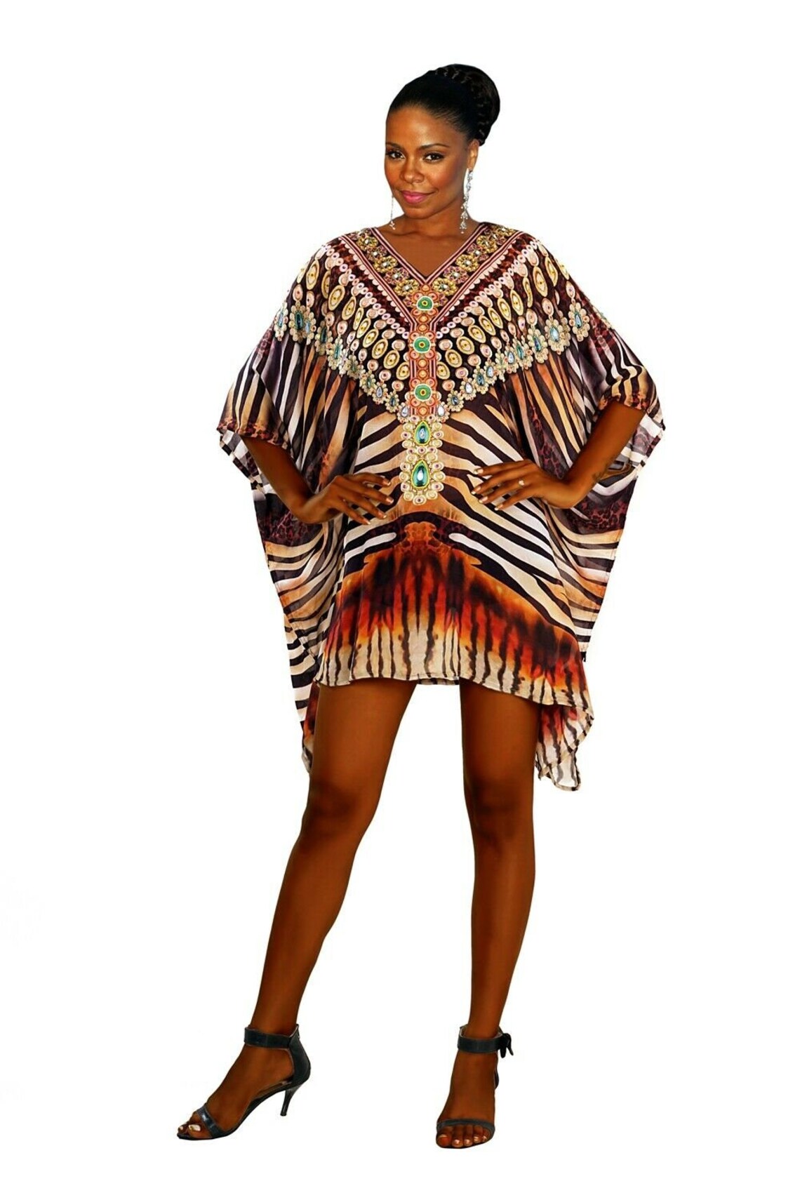 Animal Print Kaftan Short Silk Kaftan Beach Wear Kaftan Resort Wear
