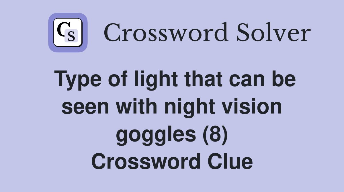 Type of light that can be seen with night vision goggles (8 Goggles Crossword Clue here you will find the answer to the goggles crossword clue with 5 letters that was last seen november 21 2023. we found 5 answers for the crossword clue goggles. we found 6 answers for the crossword clue goggle. There are related clues (shown. We have found 40 possible answers for. A further 16 clues may be. Goggles Crossword Clue.