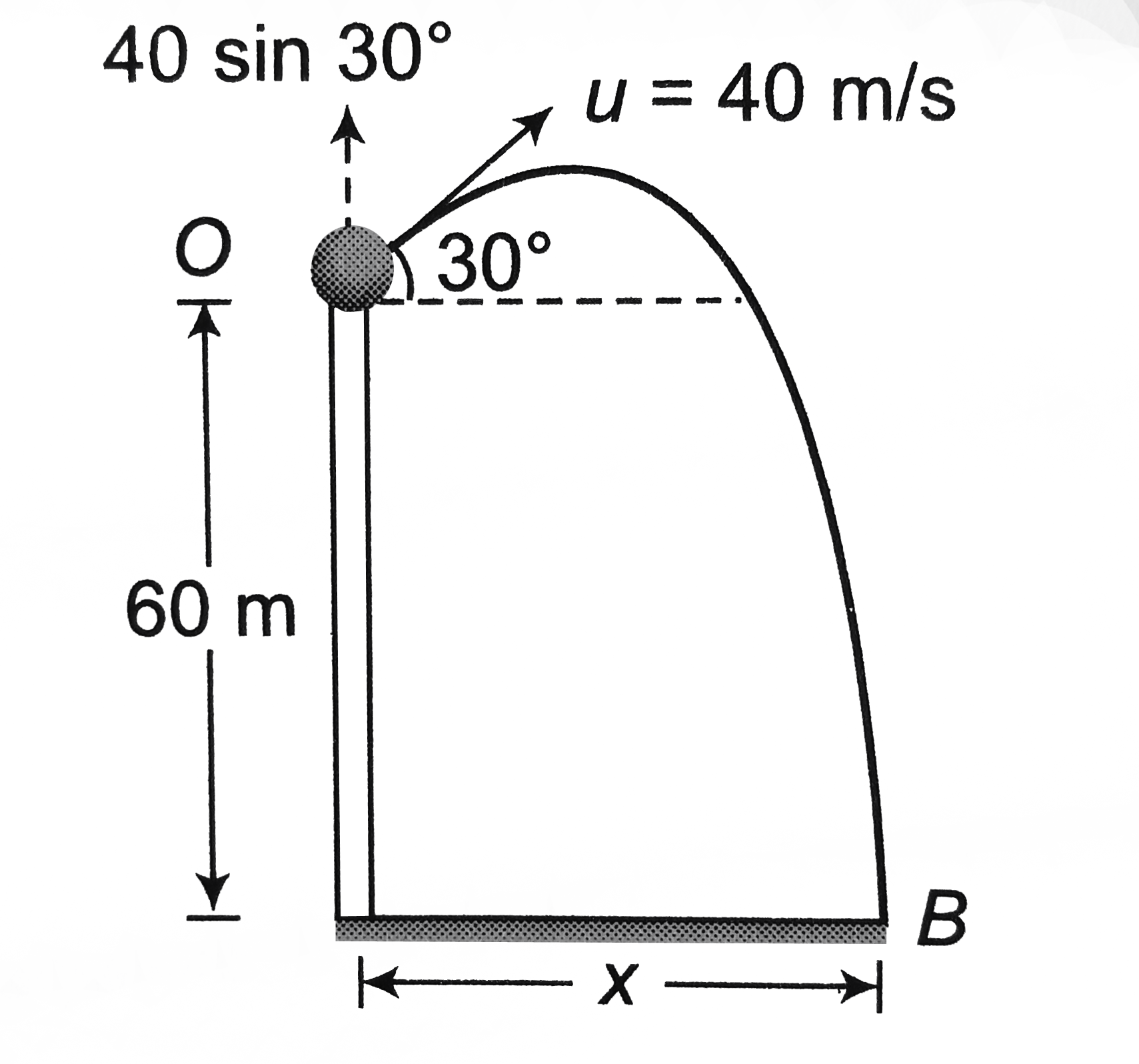 A ball is thrown with speed `40 m//s` at an angle `30^()` with