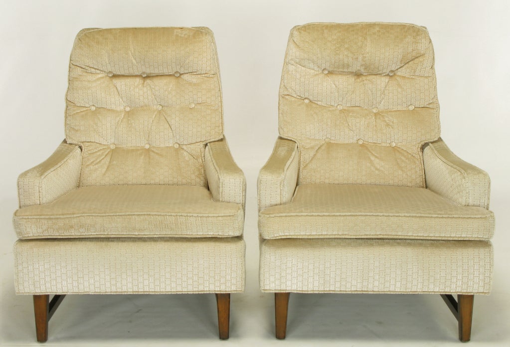 Pair 1960s High Back Ivory Velvet Lounge Chairs at 1stDibs
