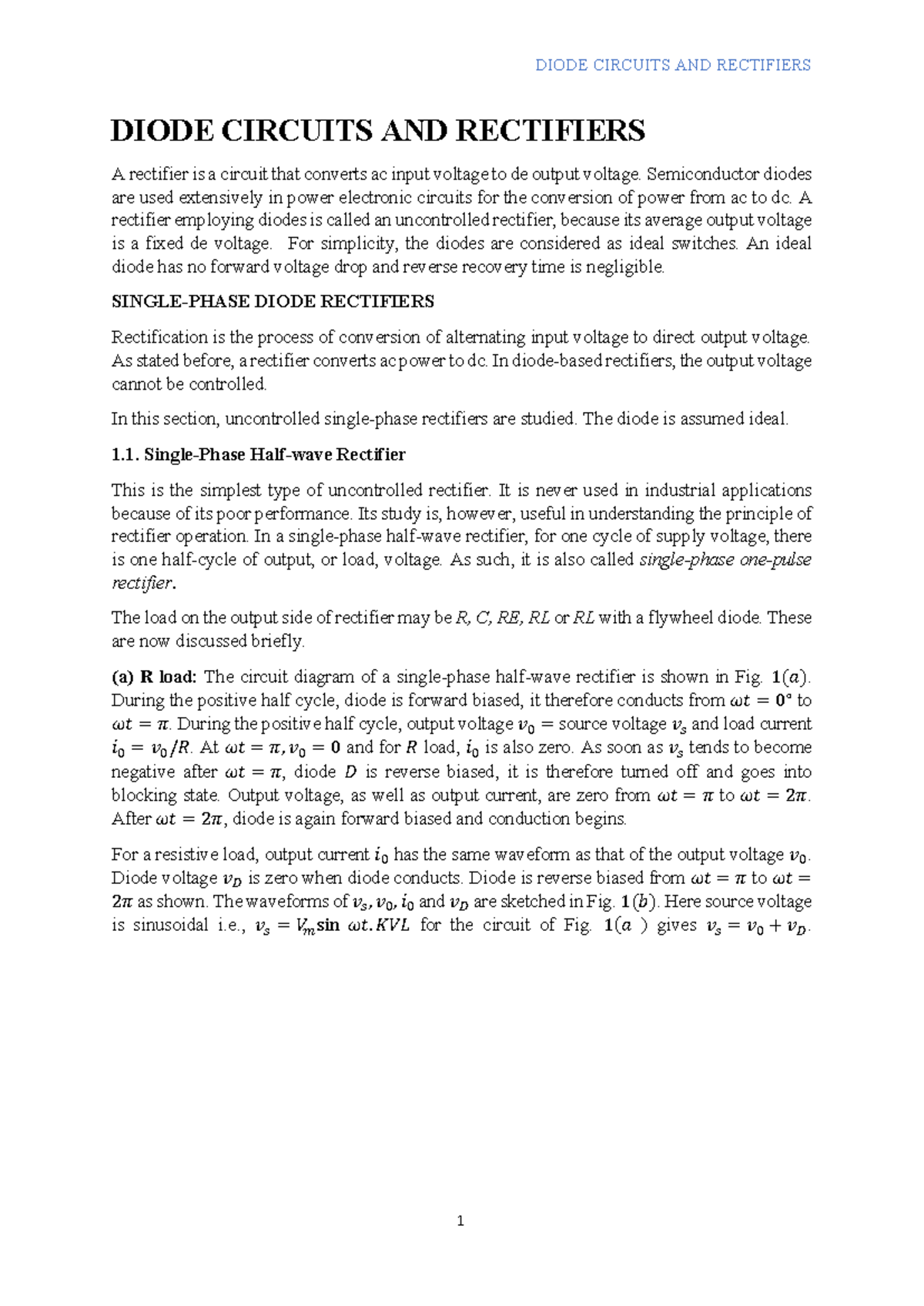 Rectifiers DIODE CIRCUITS AND RECTIFIERS A rectifier is a circuit