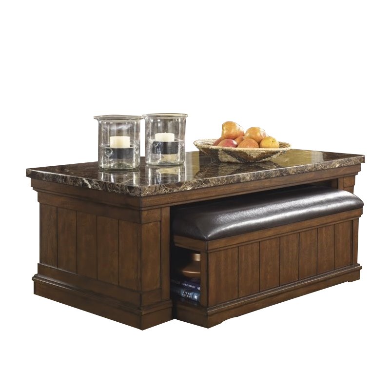 Leather Coffee Table Ottoman With Storage • Display Ashley Merihill Coffee Table With Ottoman It is topped with a faux marble covering to that lends an air of wealth and sophistication. With the warm brown finish flowing beautifully over the planked side panel detailing supporting the rustic beauty of the faux marble table tops,. Here is a quick guide to help you decide if a coffee table or ottoman is right for your space.. Ashley Merihill Coffee Table With Ottoman.