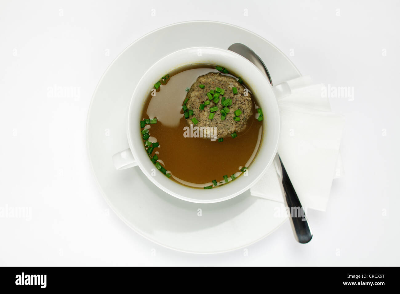 Liver dumplings in beef broth, sprinkled with chives Stock Photo Alamy