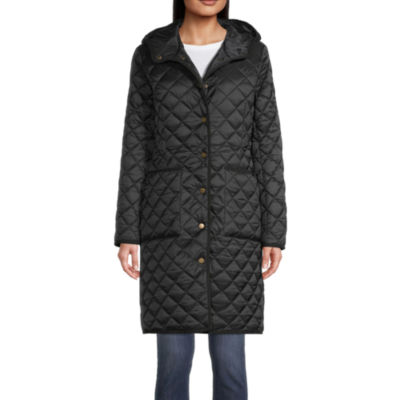 St. John's Bay Womens Hooded Midweight Quilted Jacket, Color Black