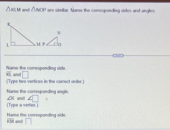 Solved KLM and NOP are similar. Name the corresponding