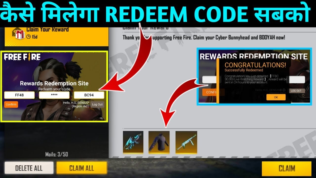 Free fire redeem code today,how to get black t shirt redeem code