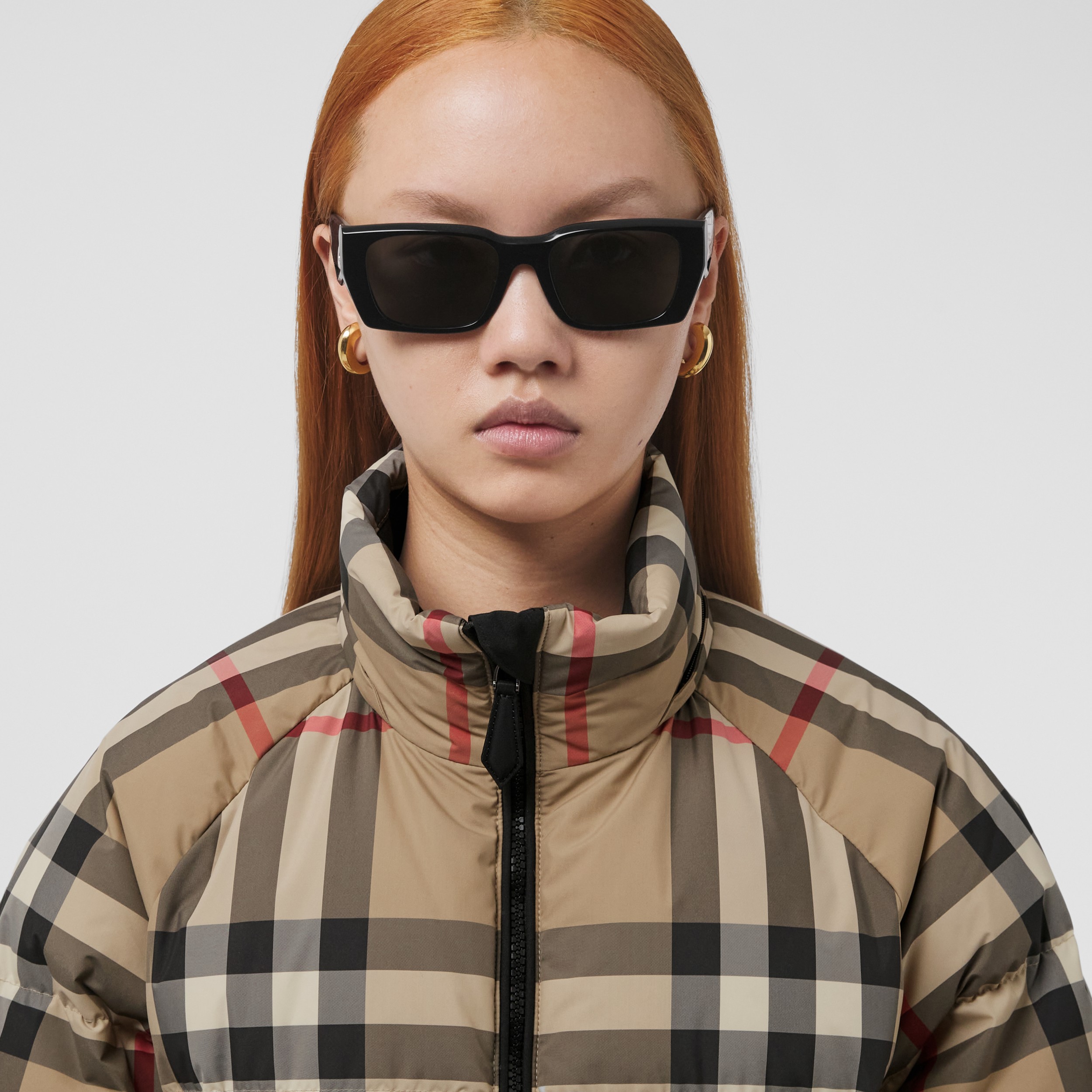 Detachable Hood Check Puffer Jacket in Archive Beige Women Burberry
